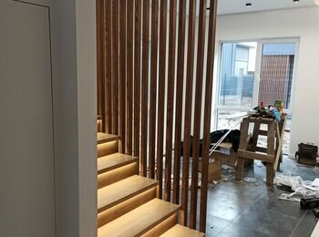 Потрібно зробити натяжну стелю в коридорі, вітальні, в коридорі над сходами. Загальна площа близько 65 м2. З них 7 зона над сходами , потрібно працювати на висоті.