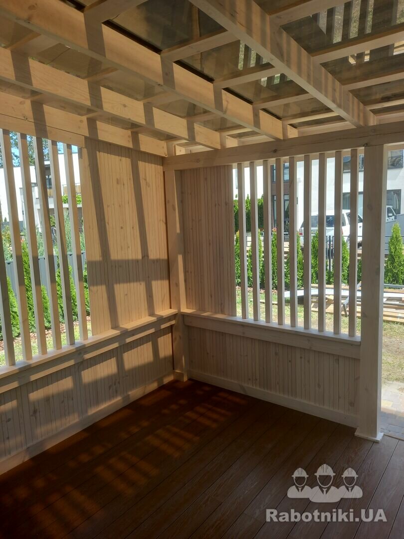 Треба зробити альтанку під мангал - підлога на лагах , стойки + криша - розміри 9*6 метрів , зашити дошкою дві стіни. Подробиці по телефону ***