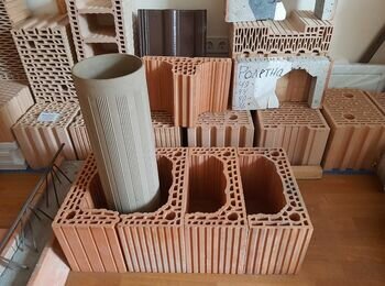Тут не потрiбне -армуваня, армопояси, опалубка, утепленя стiн та iншi потрiйнi роботи з переплатою, якi потрiбно до ГБ, або цегли/2Нф, та Кератерма з довгобудом.