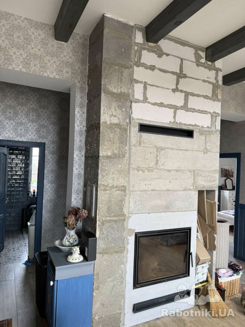 Потрібно оздобити камін Ясногородка , Макарівський район , Київська область Оздоблення каміну натуральним каменем ( сланець / травертин ) 12м2