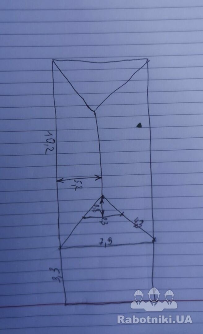 Потрібно зробити:Перекрити дах будиноку 7,9 х10,2 4-хскатка + прибудова 3,3 х7,9, подовжити стропила щоб був випуск 30 см, підшити короб.