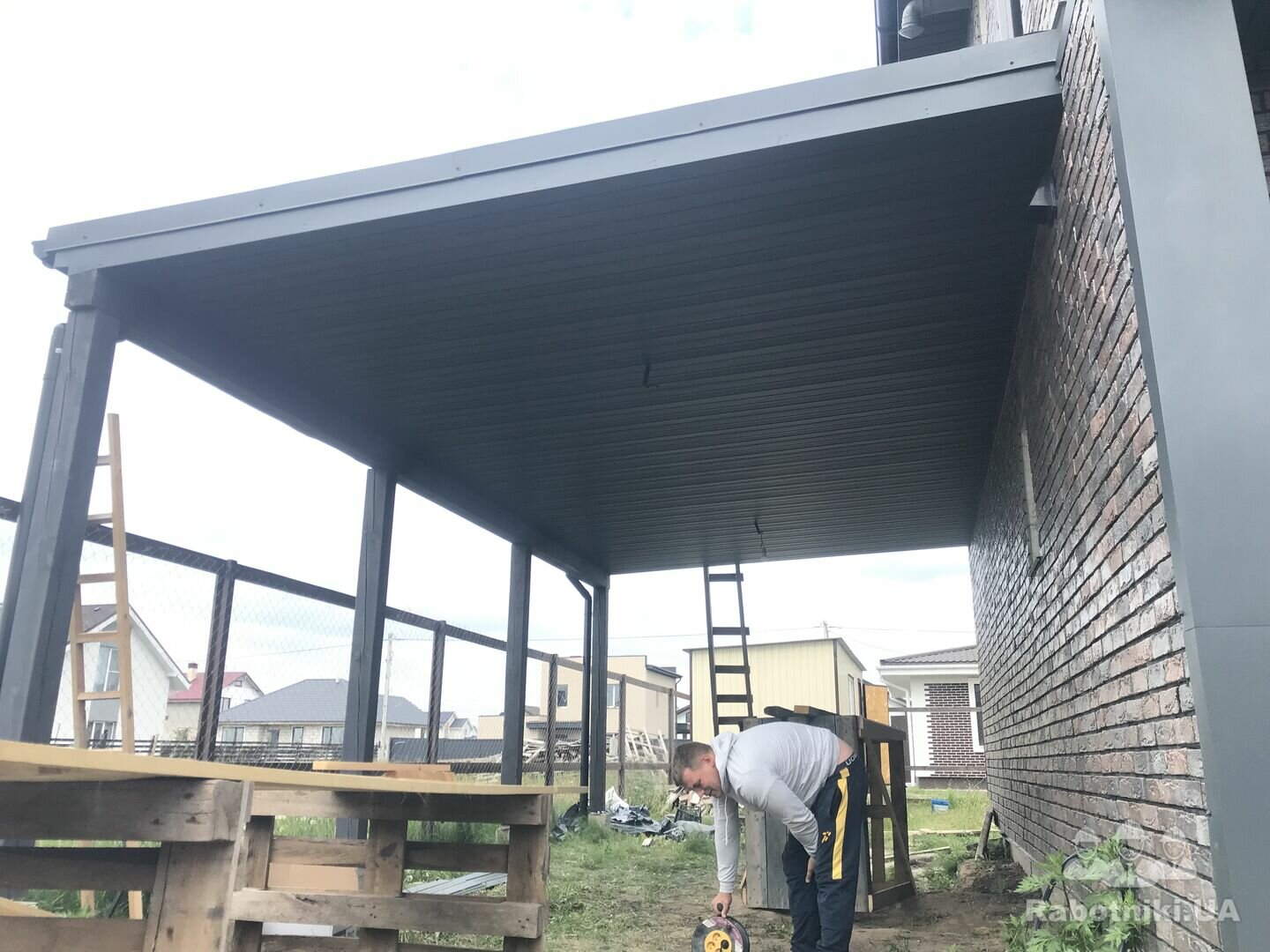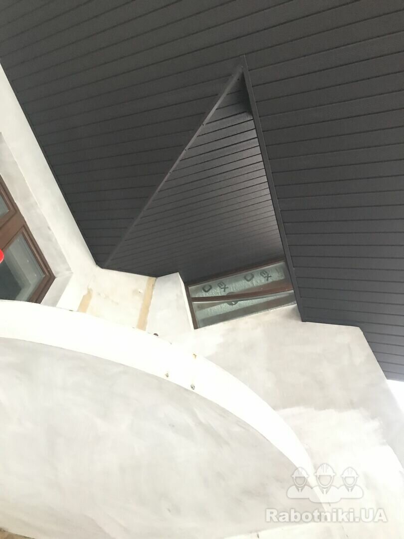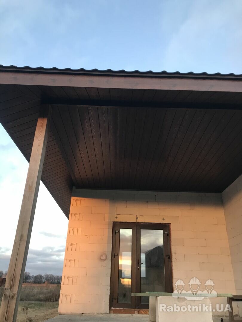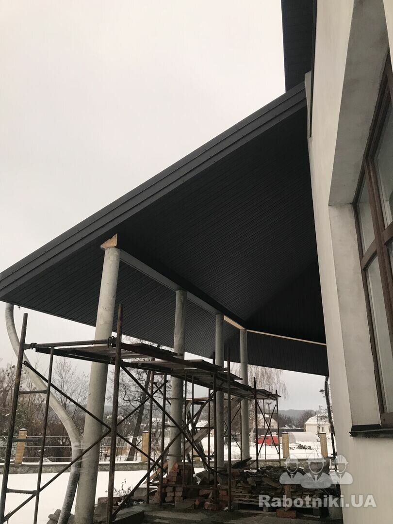 Необхідно підшити навіс софітом, площа 67 кв.м. Також необхідно встановити парапети
