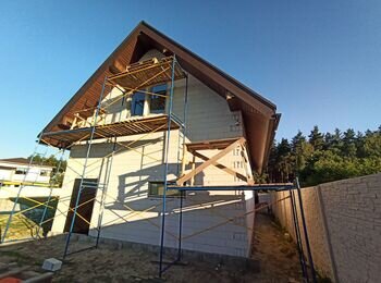 1) Обшивка криші софітами (або альтернативна пропозиція від майстра) (фото актуального стану будинку додав)