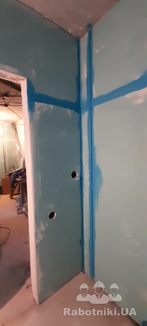 Плитка керамограніт 60*60см, поверхня гіпсокартон, гідроізоляцію нанесено, плитка та клей уже на обєкті.