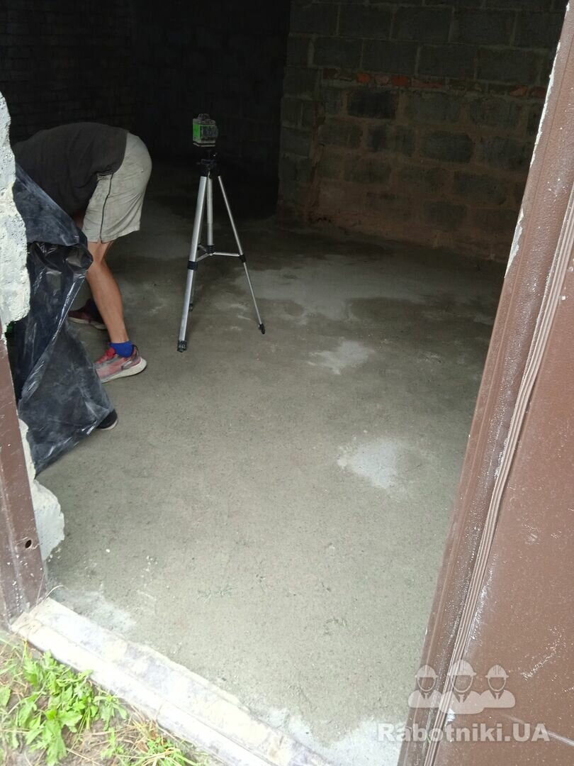Фундамент, коробка, стяжка, льох (якщо потрібен) дах, установка воріт або дверей, вимощення, освітлення, відливи