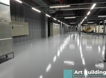 Стоимость покрытия на 500м.кв. -1750000 грн с НДС под ключ. Дополнительно плинтус монолитный полимер бетонный -1000 грн /м.пог. покрытие не боится прямого контакта с водой, разрешено использования погрузочной техники (рокла, кара).