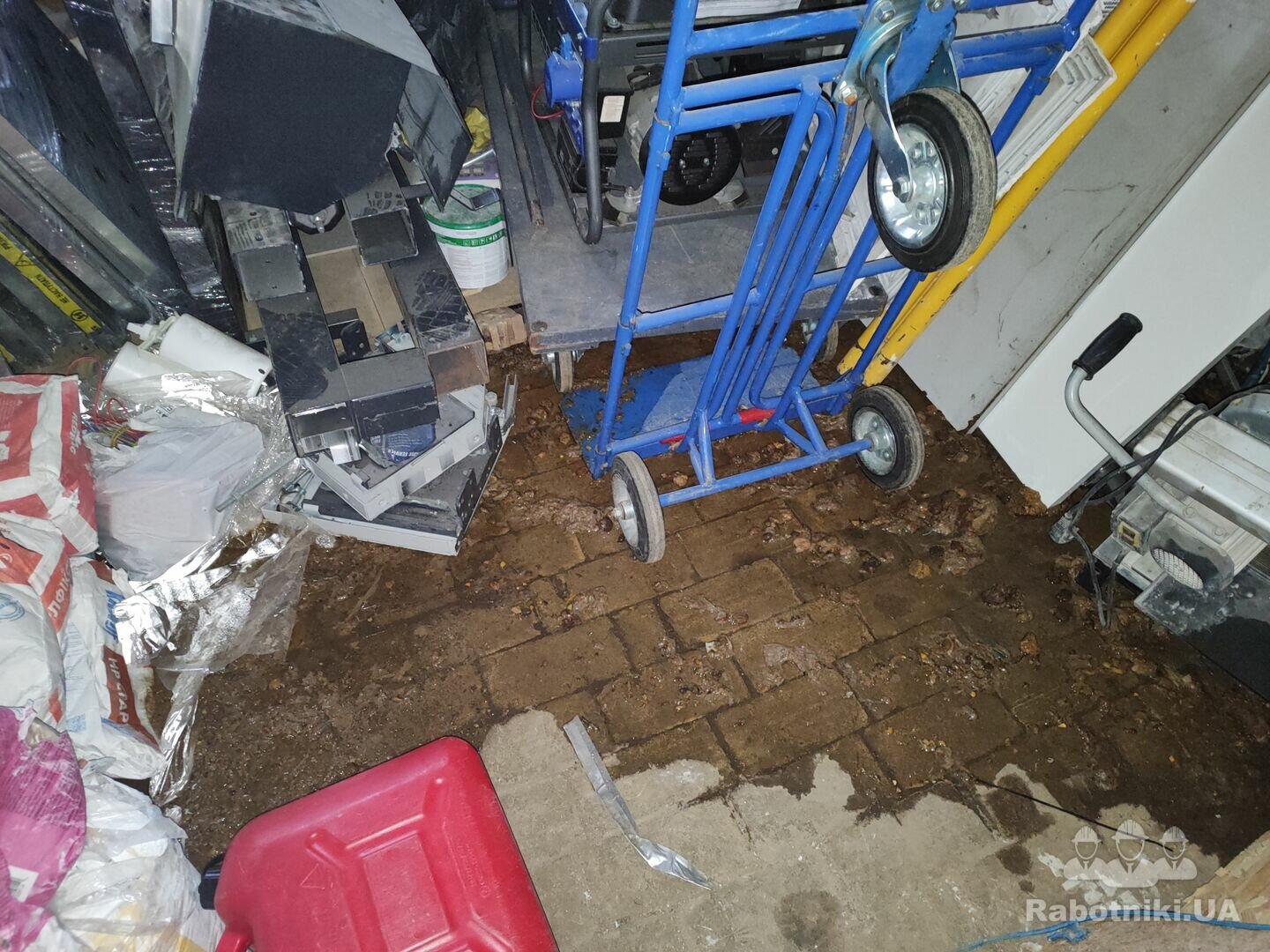 В складському приміщенні прорвало каналізаційну трубу. Ремонт виконано. Потрібне прибирання площа засмічення - 6м2