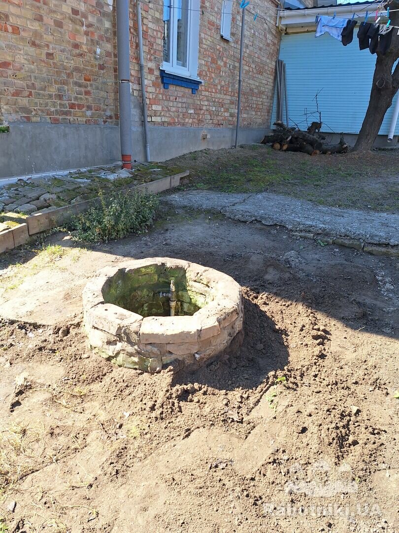 1) викопати траншею 4х1,5 м від колодязя до стіни будинку (є зображення);