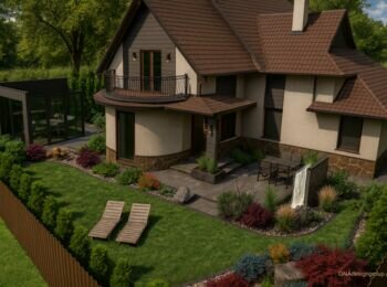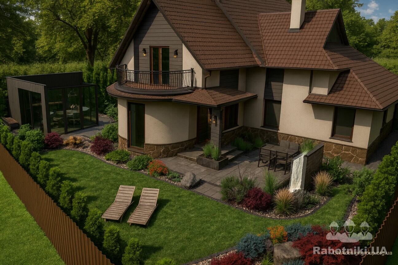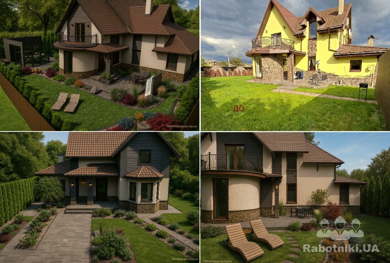 + розробку зонування/планування та проектування благоустрою території навколо, Ландшафтного дизайна, вхідної/в їзної групи, різноманітних зон відпочинку, підбір рослин та тротуарної плитки/доріжок, моделювання індивідуальних локацій, 3д візуалізацію цього, 2д плани, освітлення (нічна версія), 3д відео-ролик, 360 градусів панорами.
