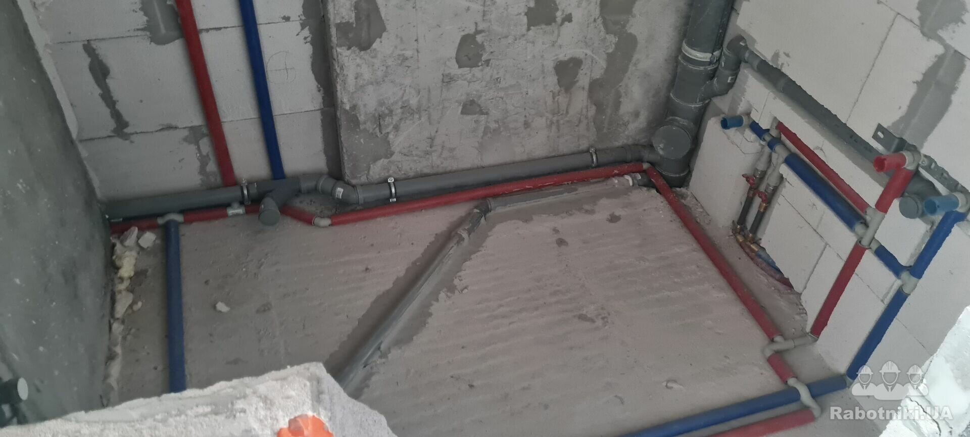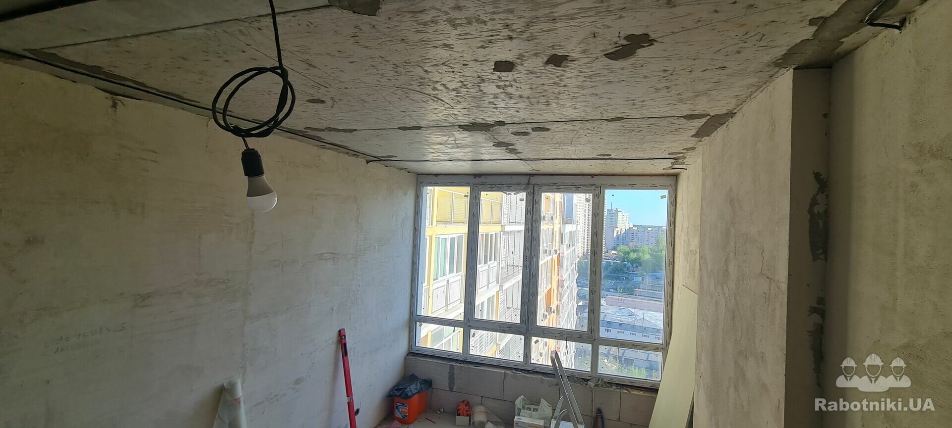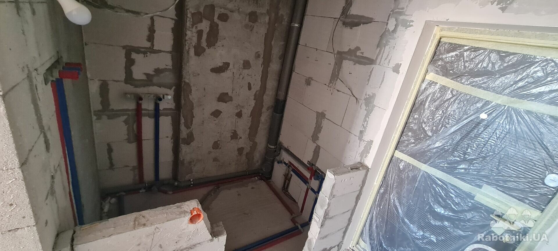 підлога (стяжка є, потрібно вирівнювання, укладання покриття ламінат); Покласти плитку.