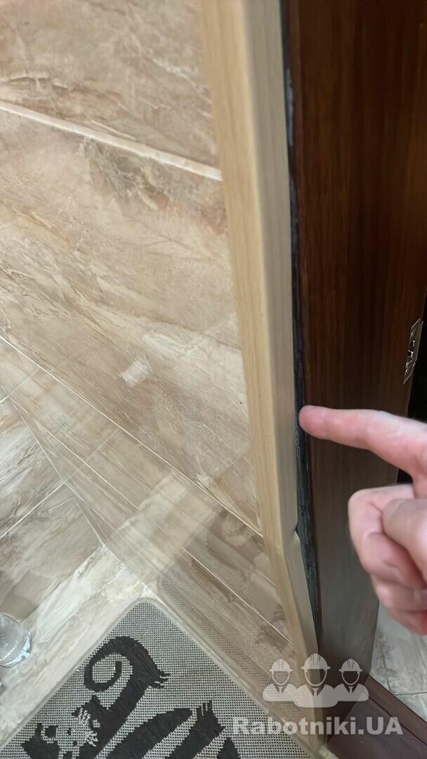 Відійшла плитка від стіни (декілька плиток) від стіни, потрібен ремонт. Можливо внаслідок просадки будинку. Плитка ціла, але трохи відійшла. Потрібно зняти, можливо трошки підрізати та посадити на клей на місце.