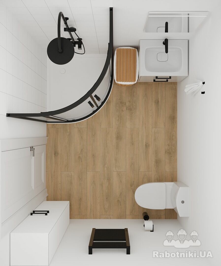 Нужно сделать санузел под ключ по дизайн-проекту (см. фото).