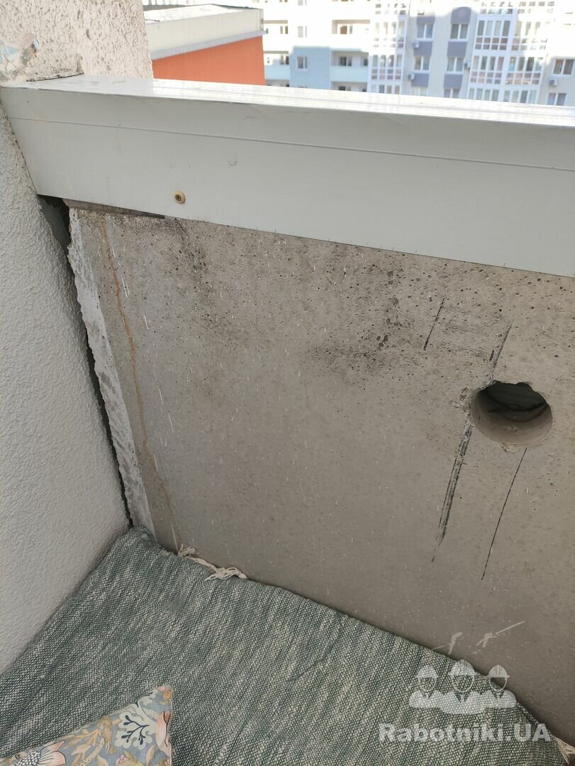 Нужно пошпаклевать стену балкона под покраску + Сделать порожек.Площадь балкона-3,5 м2.