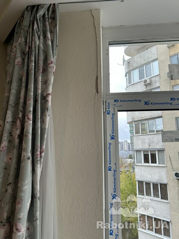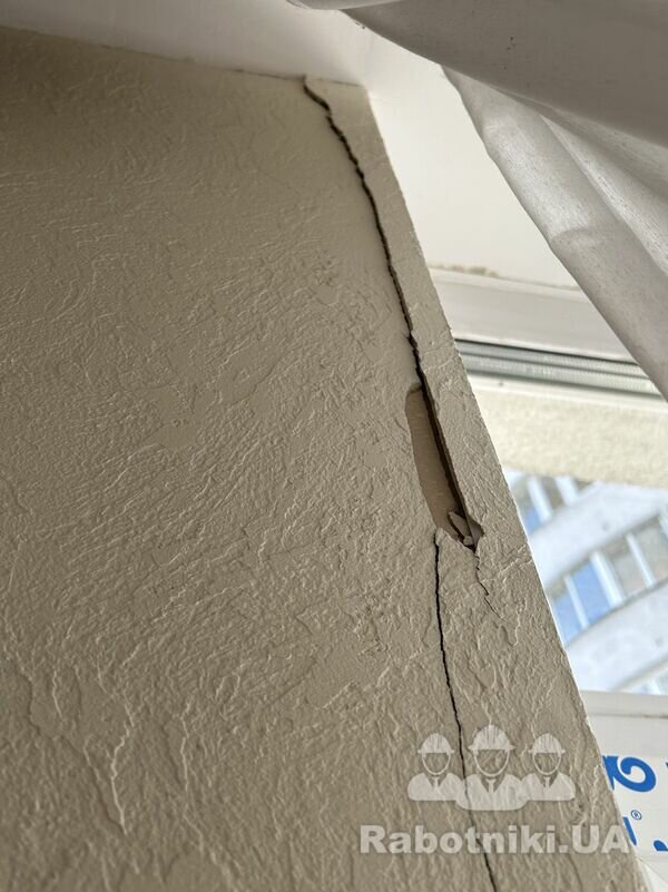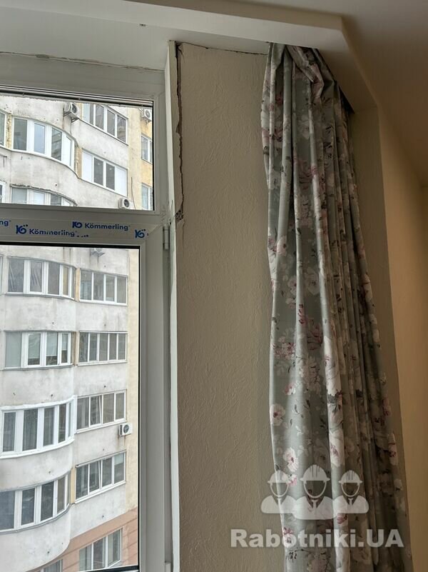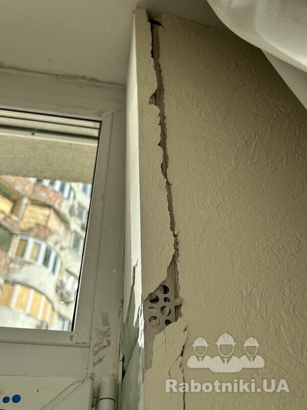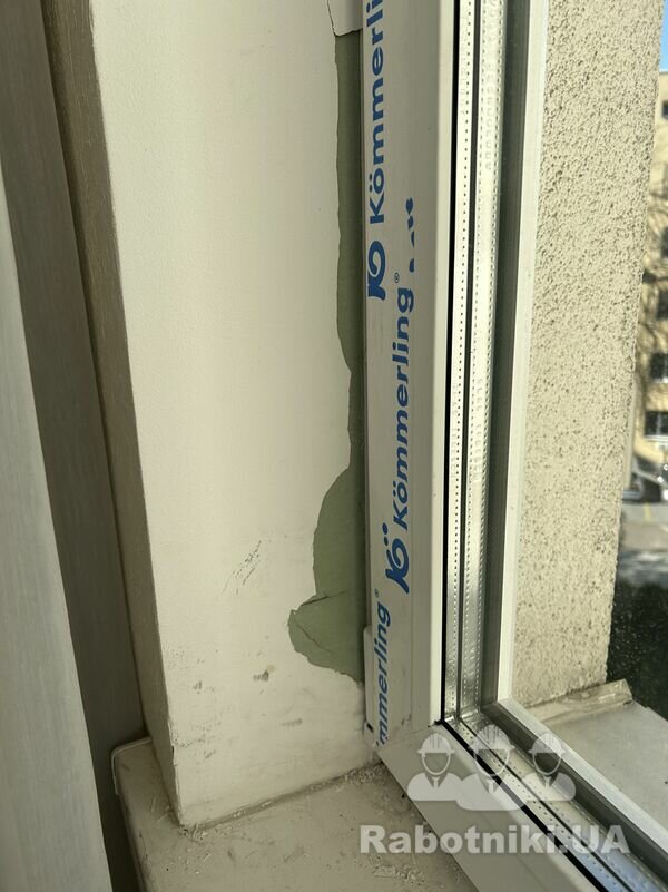 Відштукатурити і відшпаклювати невеликі тріщини і відколи навколо віконних рам і на стінах після ударної хвилі. Закласти щілину після заміни підвіконня. Потрібні інструменти майстра та порада за матеріалами, наскільки розумію, потрібна декоративна штукатурка.