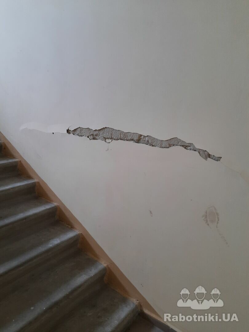 Точковий ремонт внутрішніх стін в багатоквартирному будинку, який вкючає демонтаж старої штукатурки, грунтовку, накладення сітки, штукатурку та/або шпаклювання взалежності від пошкодження. Місцями це стіна в 20кв.м., місцями просто невиличкі клаптики.