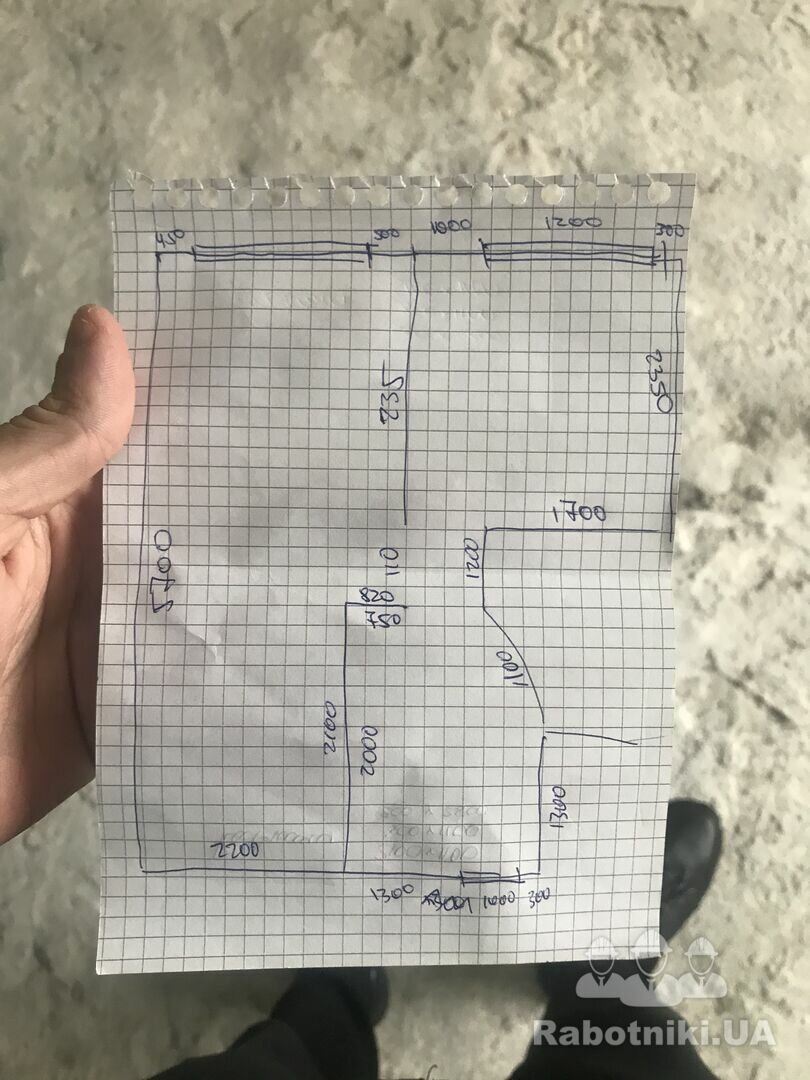 Шукаю майстра. Необхідно поштукатурити стіни по маяках в однокімнатній квартирі, обсяг 80-85м2 пропонуйте ціну вже з матеріалом і роботою. Розміри прикріпив.