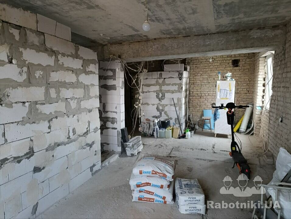 Вітаю. Потрібно вручну поштукатурити стіни в будинку 1979 року. Стара штукатурка та радіатори прибрані. Поверхня - цегла та газоблоки. Ціна підлягає обговоренню після заміру площі стін. Загалом площа об єкта - 54 метри кв і висота стелі 2.6 м. Теоретично площа стін - 110 160 м .