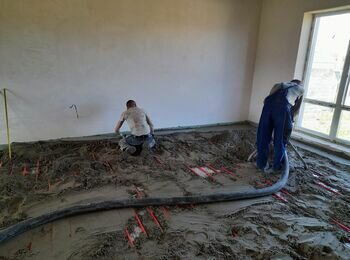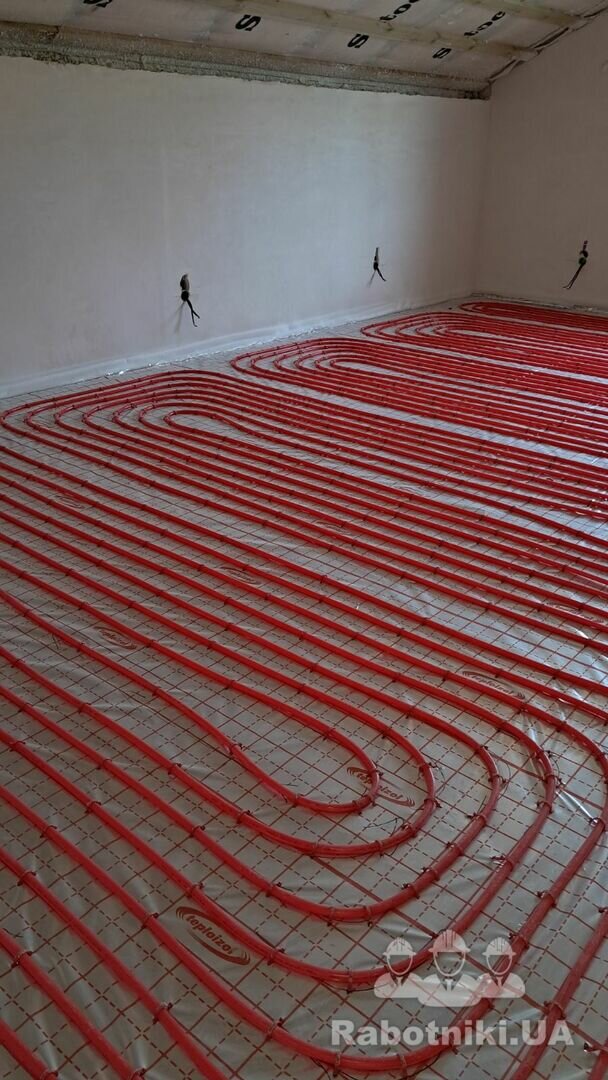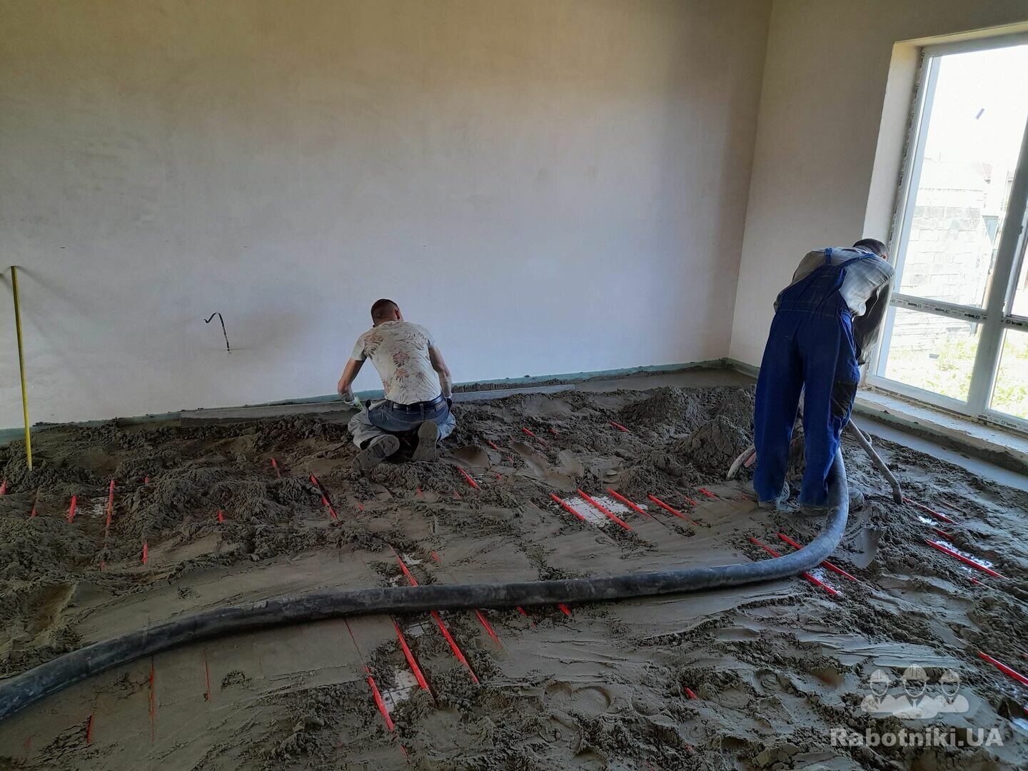 2 етап. Після укладання труби теплої підлоги заливка чистової стяжки по будинку. Загалом 110 м.кв.