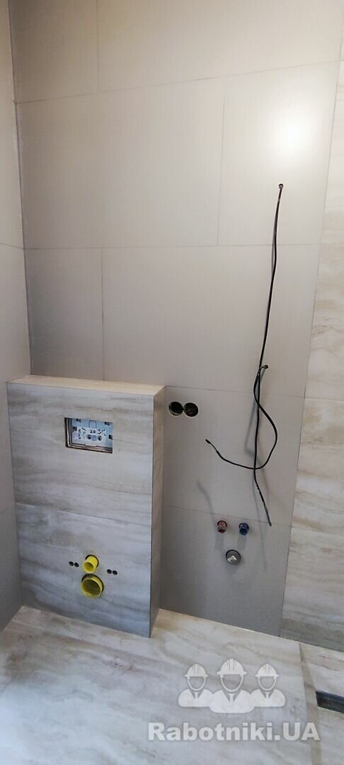 Додатково: монтаж інсталяції (1 шт.), монтаж трапу (1 шт.), встановлення ванни, зведення перегородки зі склоблоків для душової зони, гідроізоляція та формування ухилу до трапу.