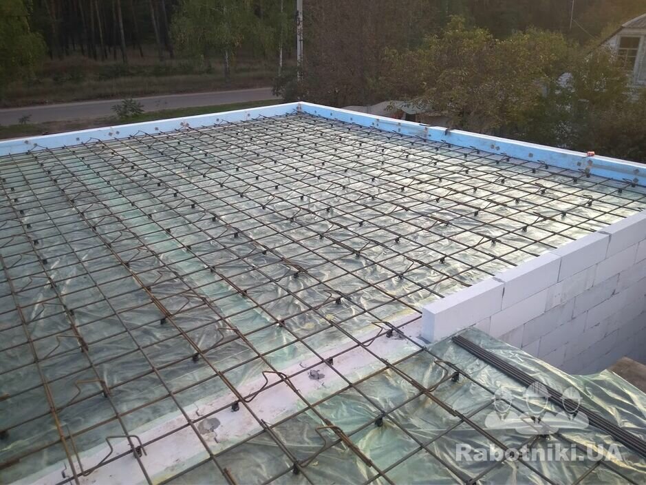 Строительство частного дома в оболонском районе на стадии 2/3 этажа. Этап выставления опалубки для плиты 2 этажа.