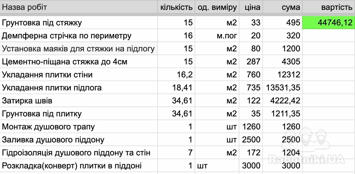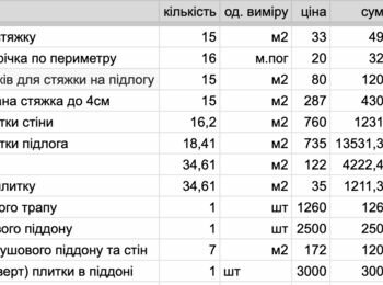 квартира, 1 поверх, нивки, київ. треба зробити чорнову стяжку у блоку передпокій, кухня, ванна. всього 15 м кв. Потім покласти плитку на підлогу і облицювати плиткою ванну кімнату. розмір ванної 1,55*2,20*2,40м. плитка розміром 30*60 см., на підлогу ,можливо, 20*60 см. плюс треба зробити піддон для душа. ще треба вставити 4 дверей - 3 міжкімнатні і вхідні. але на цю роботу можу найти іншого майстра, якщо це не входить в перелік ваших робіт. є відео об кта, тут немає можливості завантажити, можу прислати особисто. щодо бюджета, чекаю на вашу пропозицію.