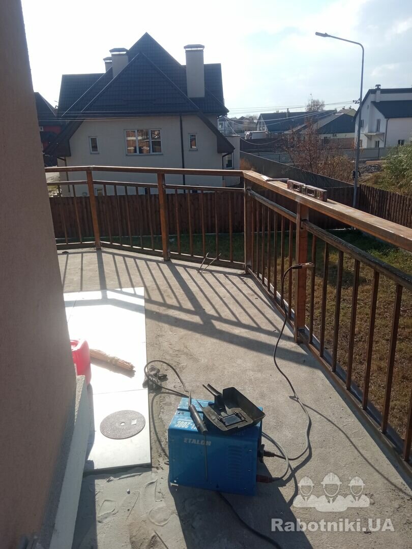 Потрібно зварити, пофарбувати і встановити 1 навіс з готових елементів і труби згідно креслень в прикладеному файлі. Пофарбувати і встановити 1 навіс, 2 хвіртки і оражденія (перила).