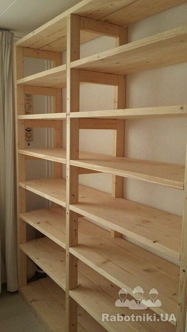 У магазин потрібно зробити стилаж з дерева (загальна довжина всіх стилажів 10м. Точний розмір кожного знатиму трохи пізніше. Паки шукаю людину яка зможе це зробити. Колір білий. Фото зразкове.
