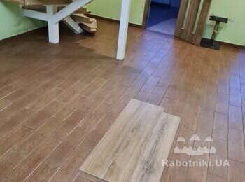 Доброго дня!Можемо виконати Дание роботи.Демонтаж старої плитки зі збором в мішки 100 грн.м/2 укладання плитки на підлогу 300 грн м. / 2(входить не ебоксідная затирка)Грунтовка підстав 20грн.м / 2.Укладання гіпсової цеглинки 400грн.м / 2.Можу скинути посилання на наші роботи.