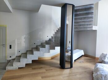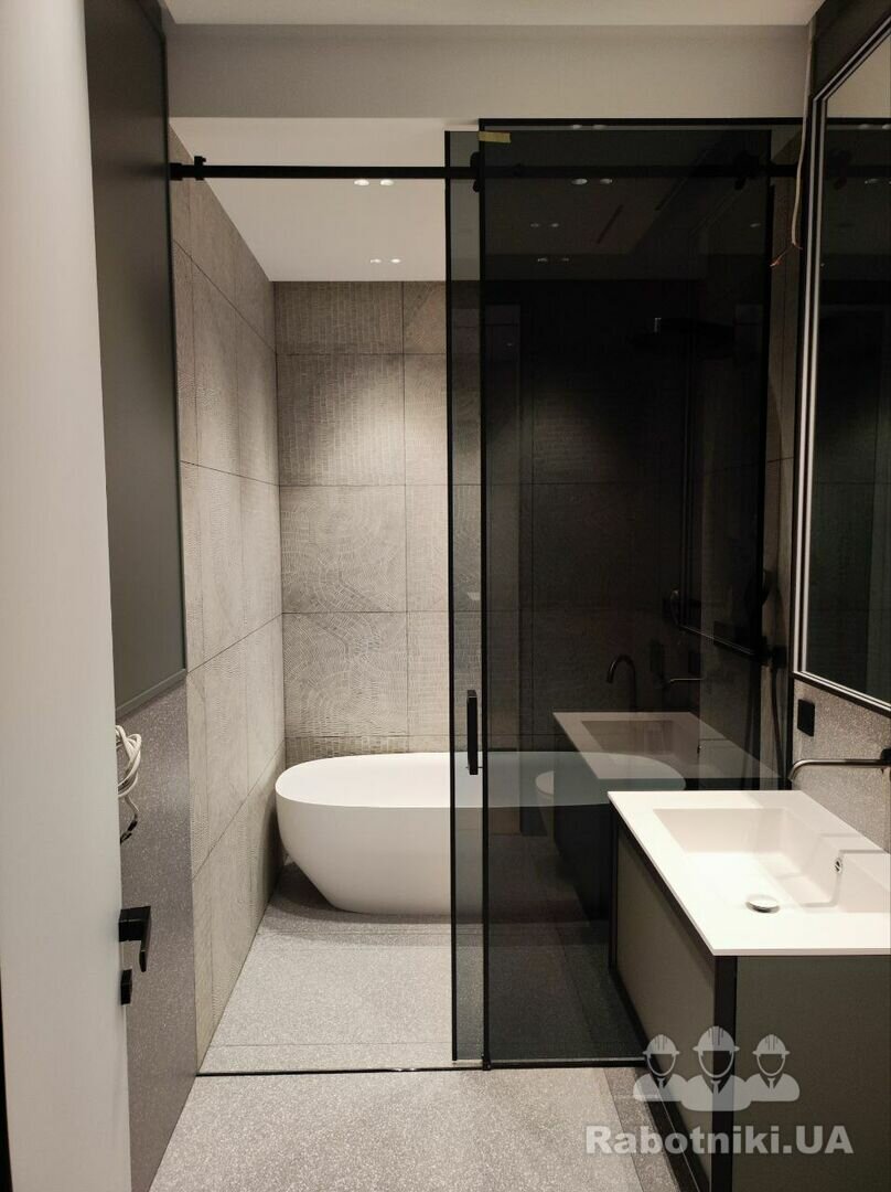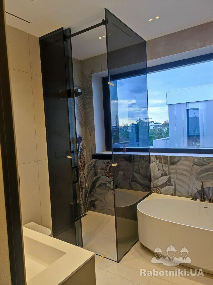 Є 3 будинки в яких по черзі потрібно укласти плитку. Загальна площа на один будинок, стін та підлог 250м2 тераса 55м2. Треба зробити душовий піддон 2шт. Монтаж гіпсокартону інсталяцій.