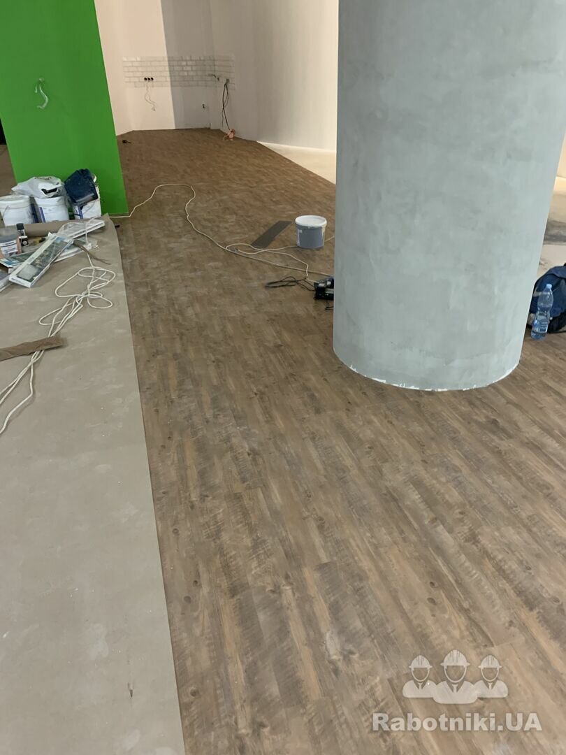Драстуйте! Займаємося укладанням вінілової плитки, килимової плитки, кварцвініл, ламінату, лінолеуму, мармоліум, ковролін, заводи на стіну, пайка лінолеуму. Заливка підлог самовирівнюючою сумішшю як площину так і нуль.