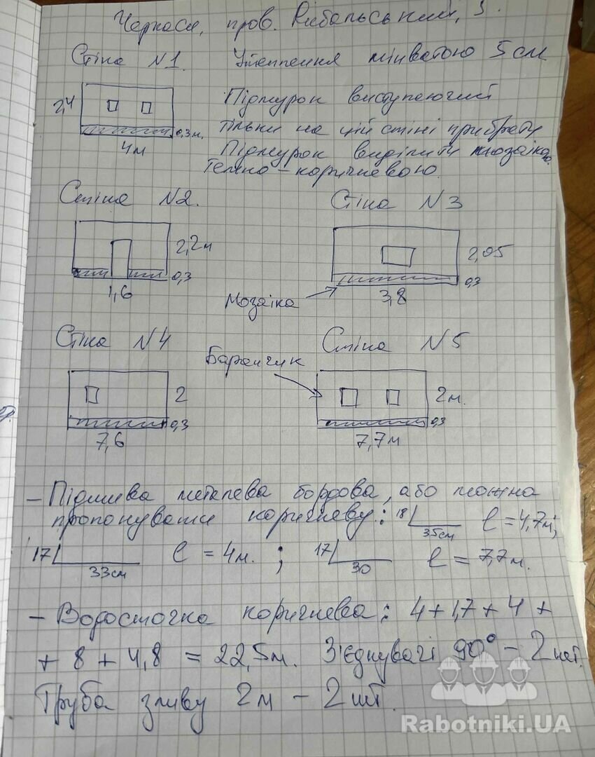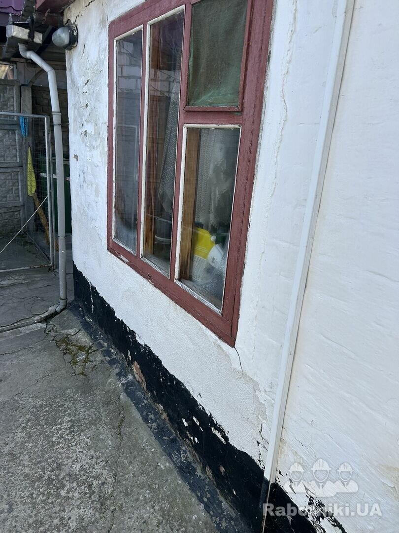 Виділення цоколю 30 см-23 м і 3 кути 20 см ( входе в загальну квадратуру) мозаікою .Прикрутити планку підшиви-15,5 м. Встановити водосточку-22,5 м. Встановити 6 вікон.