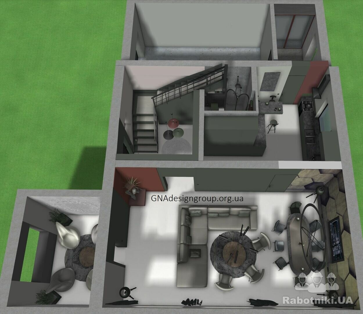 + зонування/планування та проектування Ландшафтного дизайна та благоустрою території навколо будівлі, підбір рослин та тротуарної плитки, доріжок, розробка тераси, парковки, зон відпочинку і т.д., 3д візуалізацію цього, 2д плани, освітлення і т.д.