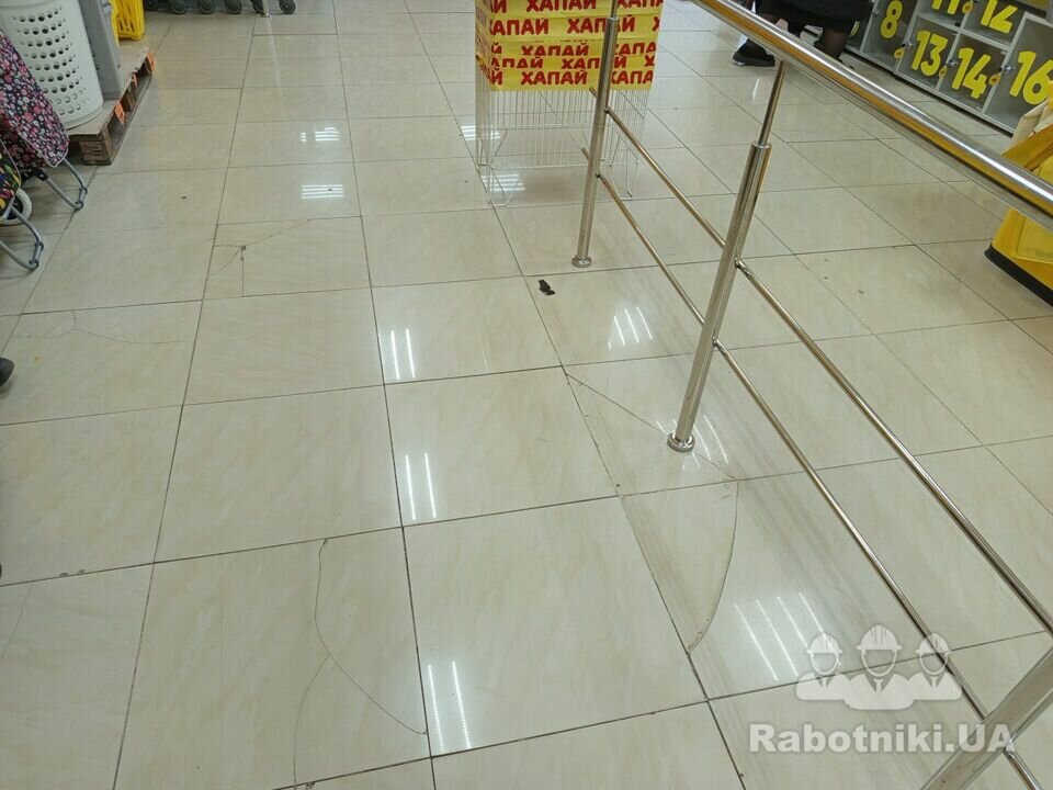 треба перекласти приблизно 70-80% плитки, там пустоти (частково лежить на ляпухах) формат 60х60