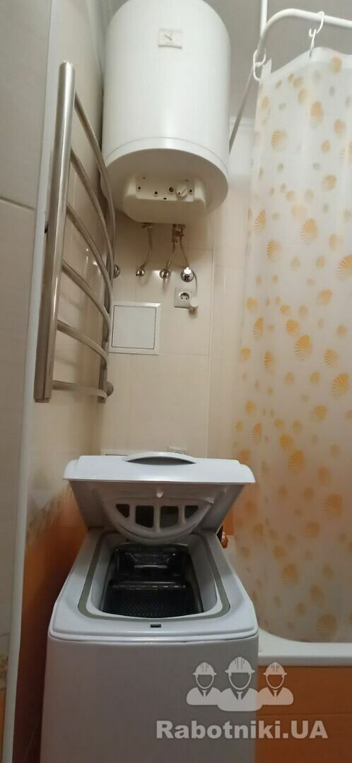 Зняти старий, повісити новий, зі старого зняти кабель з вилкою та переставити на новий. І старий та новий бойлер Горіння по 50 л. Стиралку під час монтажу приберемо убік.