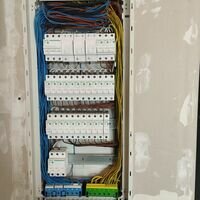 Електрощиток замалий, не поміщається необхідне наповнення. Потрібно замінити на щиток більшого обєму, добавити автомат, реле напруги, авр, розумне реле та розетку для зарядної станції.