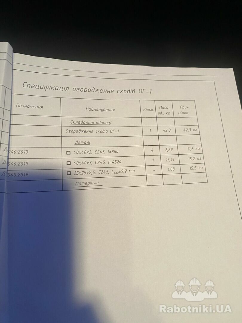 Потрібно зварити драбину на 2-й поверх з перилами . Також потрібно зварити решіткі на вікна 0,5*4 м - 9 шт та по металевим балкам зробити накриття з листового заліза т.5 мм . Помічника надам .